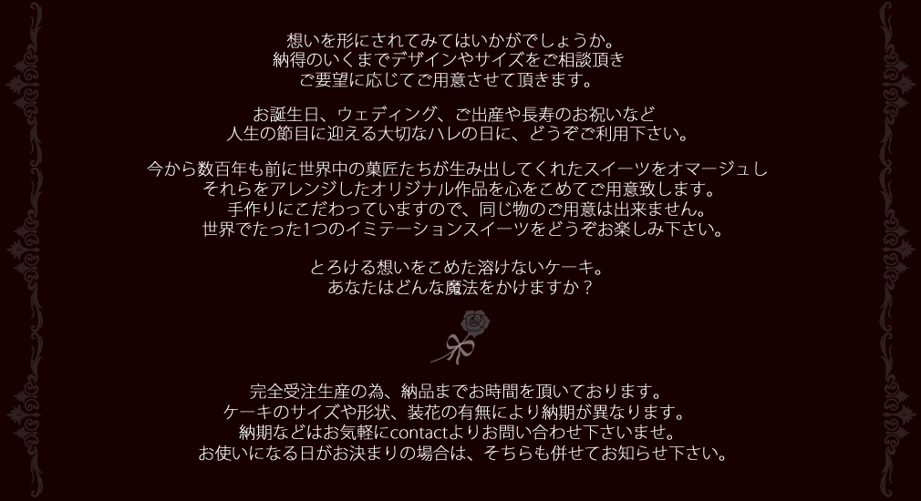 世界でたった1つのイミテーションスイーツをどうぞお楽しみ下さい。